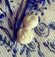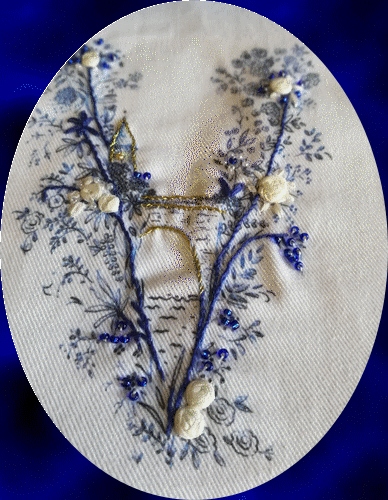 Créations originales. "V " imprimé sur du coton sergé, acheté en avril au salon des loisirs créatifs de Montluçon...